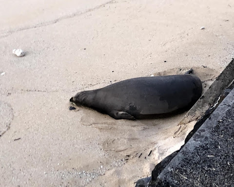 Later on, a high point of our time in the north happened on a Saturday night when we gathered with some of our Maui friends, and also a visitor from the mainland Rachel Cernick. Rachel had been Tara’s instructor at summer camp the previous summer in Washington and it was quite fortuitous that she was on the island at the same time we were. We all gathered at Ho’ookipaa, a north Maui site famous for its sunsets, as a refuge for turtles, and for spectacular surfing. We had a blast sharing food, watching the sun go down, and even getting to see up close a Hawaiian monk seal resting on the beach along with dozens of turtles.